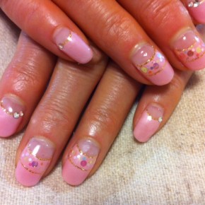 ピンクベージュにホログラムアートで春らしいイメージになりました☆