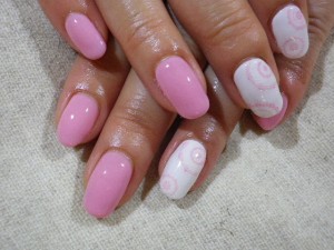 丸のレースシール!白とピンクで上品な春ネイルです☆