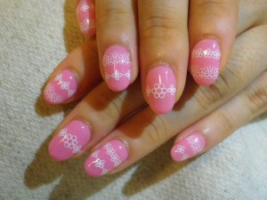 ピンクにレースで王道のガーリーネイル☆