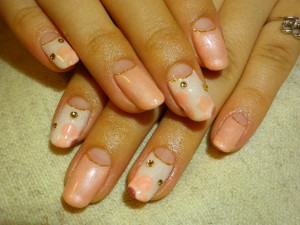 ベージュとサーモンピンクでまとめてお花模様☆