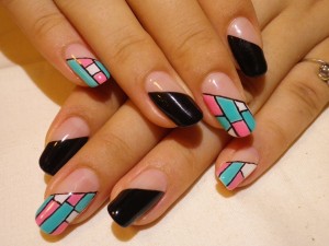 初音ミクカラーでブロックアート☆ ステンドグラスみたいにも見えますね! かわいすぎてしばらく眺めていたいお爪です☆☆