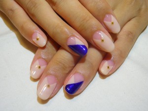 ネイビーをポイントにしたクロスフレンチ! ゴールドのパーツがのったデザインですが、 ネイビーを際立たせるために引き算!!